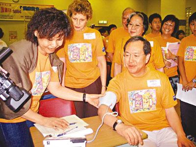 結果發現,李局長的上下血壓都略高,處事風趣的李局長笑言:「有記者在場,我心情自然緊張啦,所以血壓上升囉!」雖然李局長以為可以「諉過」記者,不過為他量血壓的張姑娘卻「仗義執言」表示,因為李局長剛走完一段路,血壓略高是可以理解的。