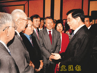 胡錦濤發表完講話,又特別走到華僑面前,與部分台胞閒話家常:「一家人嘛,有甚麼不同的看法,有甚麼不同的意見,都可以通過對話,通過談判來解決,但是有一條,你不能分裂中國。過去我們中華民族有一個傳統:誰要是把自己的國家給分裂了,那是歷史罪人,是不是呀?我們不能幹這種事情。」之後,他還特別與台胞再次合照留念。