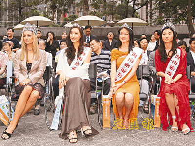 海南省來港招商搞搞新意思,在昨日中午時分選擇在熙來攘往的中環遮打花園搞了一個令人賞心悅目的旅遊推介會。參加這場「海南—健康與美麗同行」推介會的除了有代表團成員、本港旅遊業界代表外,還請來多位世界級的中外美女出席。美女們都大有來頭,其中包括2003年世界小姐冠軍羅珊娜、2003年世界小姐季軍關琦、2002年世界小姐亞洲皇后吳英娜及2004年亞洲小姐季軍李慧等。
