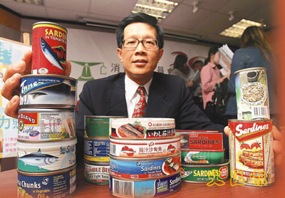消委會宣傳及社區關係小組副主席程伯中表示,部分罐頭魚的砷含量超出內地標準,建議市民每星期不要吃超過9罐。 (張立新 攝)