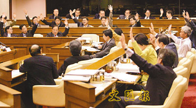 立法會政制事務委員會就會議時間進行表決。 (張立新 攝)