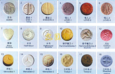 各式各樣的軟性毒品及搖頭丸。