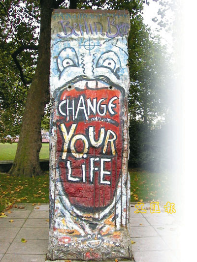另一次讓我動心的是在柏林查理檢查站展覽館,也叫「牆」展覽館。立在前廳的兩塊破碎的柏林牆,大約二十公分寬,五十公分高,每塊標價三千六百馬克,相當於一點五萬人民幣。和價錢無關。我試著搬動一塊,太沉啊太沉。我們不是短期遊客,行李不少,不可能買塊石頭回中國,可是轉來轉去,捨不得那兩塊油彩斑斕的水泥。