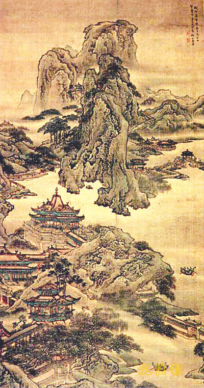 清朝畫家袁耀根據唐朝詩人杜牧的《阿房宮賦》所畫的《阿房宮圖》。 (網上圖片)