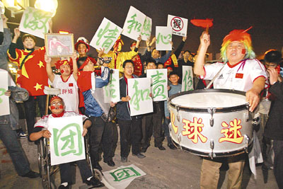 相比之下,一些市民倒是對比賽的附加活動更為感興趣,某商家在賽場外也掀起了一場主題為「體驗真足球」的競賽,商家稱,只要參加足球遊戲和足球智力問答就能獲得積分,憑積分就有機會贏取手機等獎品。這一噱頭吸引了市民爭相排隊參與,亦包括了很多原本打算早點入場的球迷。