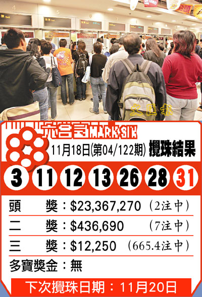 ¡@¬Q±ß¤»¦X±mÅÍ¥X¸¹½X¬°3¡B11¡B12¡B13¡B26¡B28¡A¯S§O¸¹½X¬°31¡CÀY¼ú2ª`¤¤¦U¬£$23,367,270¤¸¡A¤G¼ú7ª`¤¤¡A¦U¬£436,690¤¸¡A¤T¼ú665.4ª`¤¤¡A¬£12,250¤¸¡C