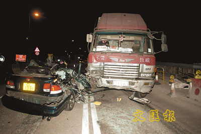 ¡@¬Q¤È5®É22¤À¡A±i¡Ñ«H¾r¾p¤@½ø«ä°ì¨p®a¨®¡A¸ü¦PM¥Sªu¤j®H¹D¥X¥«°Ï¡A·í¾p¦Ü¤»¦X§øªþªñ¤@Ó¤W±×¥kÅs®É¡A¥¢±±¶V½u»P¤@½ø¥¿¦b¸¨±×ªº40§`ªø³fÂd¨®ªïÀY²r¾Ù¡AÁöµM±Ï¥Í®ð³U¼u¥X¡A¦ýºÃ¦]½Ä¤O¤Ó²r¡A±i©m¥S§Ì«¶Ë³Q§x¨®¤º¡C