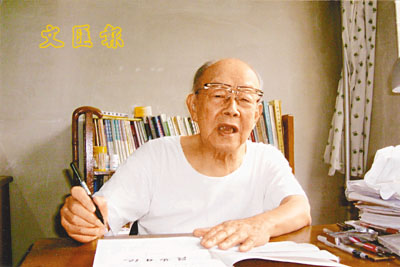 三年未見了,眼前的周先生那一臉的慈祥,那紅潤的面色,那儒雅的風度,仍是我記憶中的模樣,特別是那敏捷的思維,絲毫不減當年。悲哀的是他身邊少了一根「拐杖」。兩年前,與他相濡以沫七十個春秋的夫人張允和女士謝世了,我不知他是怎麼熬過來的。不過,周先生豁達、理智。允和女士走後,他給我的信中說:「我們結婚七十年,我沒有想到會有一天兩個人中少一個!」先生在痛苦之中,用先哲的警言排解自己,又說:「我記得一位哲學家講過:個體的死亡是群體進化的必要條件,這一想,我才安下心來。」