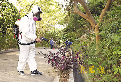【本報訊】證實感染日本腦炎的海怡半島40歲男居民,現時仍然留醫,情況依然嚴重。由於該患者病發前在合和中心工作,食環署昨日早上繼續到灣仔合和中心附近2公里範圍滅蚊,包括寶雲道、灣仔峽道、玫瑰崗一帶。