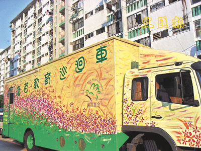 護苗基金的「護苗教育車」,主要為高小學生服務。 (盧燕娥 攝)