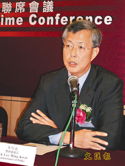 另外,曾蔭權在會議上致辭時,重申本港整體治安穩定,過去10個月的罪案數字較去年同期下跌超過8%,即每10萬人口計算的報案數字為1299宗,整體罪案率較世界上很多大都市為低。但新罪行亦隨著科技進步而不斷湧現,執法部門隨時要提高警覺,市民亦要與部門加強合作。
