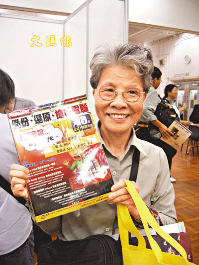 朱婆婆在博覽會中買了一本關於還原及備份等知識的電腦書。 (歐陽芷欣 攝)