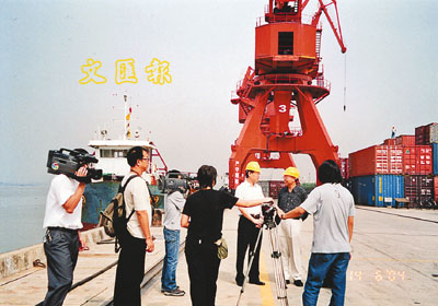 到內地的貨櫃碼頭考察,並接受電視訪問。