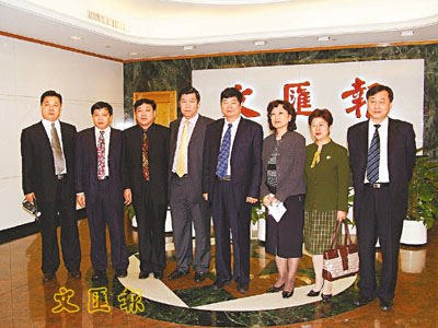 江蘇省張家港市常務副市長龐偉中(右四)、張家港經濟開發區副主任陳力克(右二)等一行7人訪本報,受到本報副社長劉永碧(右三)及總經理仇學忠(左四)的熱情接待。