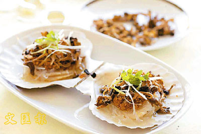 蒜茸雞油菌蒸扇貝 (圖)