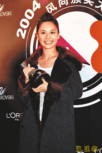 【本報訊】2004LYCRA(萊卡)CHANNEL Young風尚頒獎大典前晚假上海商城劇院舉行,頒發的獎項包括「風尚運動員」郭晶晶、「風尚女演員」(內地)由范冰冰及李冰冰一同獲得,「風尚女演員」(香港/台灣)則由鄭秀文獲得,「風尚女歌手」(香港/台灣)是Twins,「風尚男演員」(香港/台灣)為古天樂、「亞洲突破藝人」為陳冠希、「無線音樂成就獎」由周杰倫奪得,至於李玟則奪「亞洲風尚藝人」,不過郭晶晶、鄭秀文及古仔均未能親自領獎。