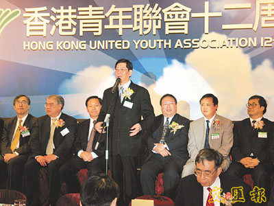 【本報訊】(記者 潘曉平)香港青年聯會日前假座金鐘萬豪酒店隆重舉行該會12周年會慶聯歡晚宴,中聯辦副主任彭清華、香港民政事務局局長何志平、中聯辦秘書長趙廣廷、中聯辦主任助理兼港島工作部部長王如登擔任晚會主禮嘉賓,青年聯會主席容永祺在致詞中稱,未來將以吸納社會各界青年才俊和大學生為首要工作,希望為香港、為國家的繁榮發展作出貢獻。會慶籌委會主席曾智雄致辭時希望舉辦更多適合青年人的活動。