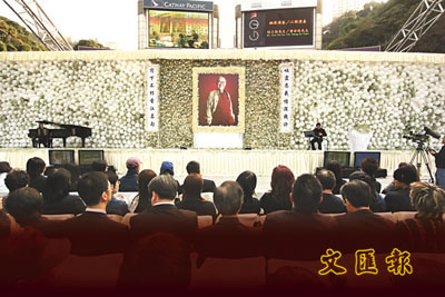 追思會場上,一幅巨牆,中央的遺照中,紅襯衣、米色唐裝的霑叔,咧嘴而笑。旁邊荷蘭火百合、白氣球點綴著霑叔兩句詞作:「吐盡恩義情深幾許,寫下不朽香江名句。」雖嫌不夠對仗,卻道盡霑叔至真性情、一生成就。最高峰時,大球場內坐滿二萬個座位。大會原只打算開放下層座位,後亦開放了三樓位置。最先來到球場的梁先生,早在前天晚上11時,在昏黃燈光下,蕭瑟冬風中,一身黑衣,在列排的鐵馬陣前,鋪蓆而臥,排隊進場。