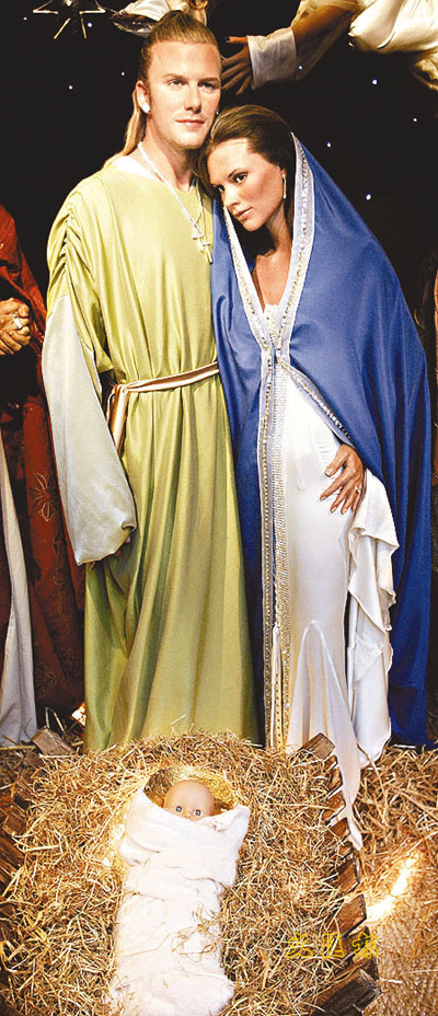 倫敦杜莎夫人蠟像館為增添聖誕氣氛,將館內的英國球星碧咸和其妻子維多利亞的蠟像扮成約瑟和妻子聖母瑪利亞。但英國高級神職人員周一對此大表憤怒,斥之為「太過份的幼稚噱頭」,認為有侮宗教。