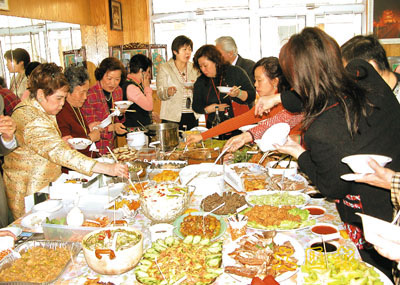 汕頭商會巧手炮製的「聯合國」地道美食,大受歡迎。(鄭群 攝)