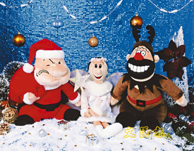 大力水手聖誕限量版毛公仔包括大力水手聖誕老人、奧莉芙天使和布魯圖聖誕鹿。
