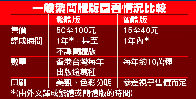 [2004-12-10] 一般繁簡體版圖書情況比較