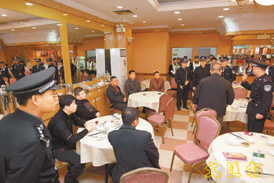 警方迅速出動將8名「平頭」堵在酒家內。 (深圳辦)