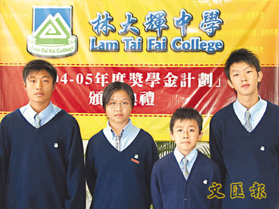 林琬斯(左)及郭灝霆(右一)與兩名獲獎同學合照。(郭嘉曦 攝)