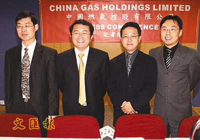 左起:中國燃氣高級經理賀紅兵、劉明輝、財務總監李偉雄及執行董事朱偉偉。(張偉民 攝)