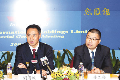 劉漢波(左)稱,公司未來將以船舶服務為主業,並將在內地和海外設船舶服務網絡。旁為董事副總經理林立兵。(張偉民 攝)