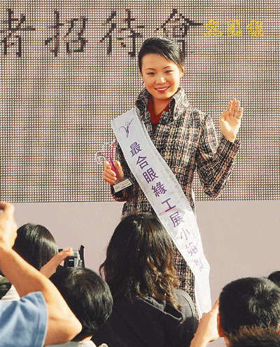 每屆工展會的重頭節目之一,就是工展小姐選舉。雖然工展小姐選舉比賽在明年1月1日才舉行頒獎禮,但主辦單位特別在昨日舉行最合眼緣工展小姐選舉,結果由在金百加發展有限公司任職推廣主任、6號的陳晨奪得此榮耀。雖然只是最合眼緣工展小姐選舉,但11名參選佳麗均施展混身解數,除介紹自己外,更介紹所屬公司的產品,亦向台下觀眾發問問題。