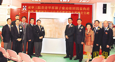 【本報訊】(記者 張萍)東華三院香港華都獅子會幼稚園日前舉行開幕典禮,邀得教育統籌局副秘書長鄭恩賜太平紳士蒞臨主禮。東華三院主席兼校監陳耀莊律師於典禮上致詞時謂,位於將軍澳的香港華都獅子會幼稚園為東華屬下第15間幼稚園,於本年9月落成開課。