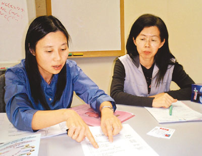陳凱珊(左)呼籲家長與老師要多了解動作協調障礙兒童,以協助他們解決生活和學習上的困難;旁為梁玉華。 (羅瑩芝 攝)