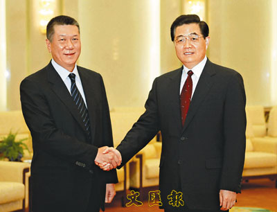 去年底,國家主席胡錦濤在北京會見來京述職的澳門特別行政區行政長官何厚鏵。 (資料圖片)