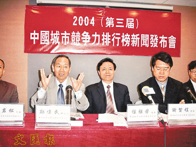 【本報訊】(記者 卓建安)在香港註冊的中國城市競爭力研究會昨日在港公布2004(第三屆)中國城市競爭力排行榜,香港在城市整體競爭力、中國城市成長競爭力和中國城市誠信政府三個主要排行榜上均名列第一,而該研究會在綜合評估2003年中國城市首腦的表現後,亦選出2003中國城市十大風雲首腦,澳門特首何厚鏵、深圳市市長李鴻忠和北京市市長王岐山等上榜。