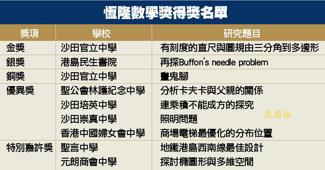 恆隆數學獎得獎名單 (圖)