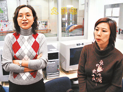 家長馬太(左)表示,小班教學令她的子女獲得更多關注。方太(右)表示,小班學生更能互相幫助。 (任智鵬 攝)