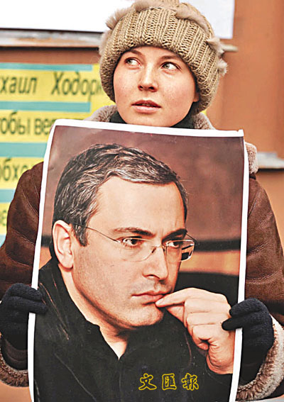支持者在莫斯科聲援被囚的尤科斯大股東。 (路透社)