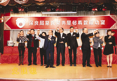 【本報訊】(記者 鄭群)保良局為籌募拓展服務費用,於本年9月及10月推出慈善獎券暨屋h籌款,成績美滿。為答謝各協助推銷慈善獎券之屋h、屋苑及團體,該局甲申年董事會日前假尖沙咀海洋皇宮酒樓舉行慶功宴,招待各單位之代表,邀得民政事務總署謝萬誠助理署長出席主禮,並獲粵劇名伶蓋鳴暉及吳美英擔任特別嘉賓,演唱多首粵曲助興。