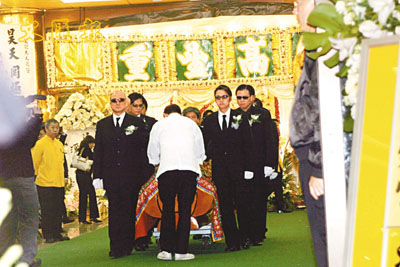 【本報訊】(記者 梁紹明)上月廿七日辭世的著名電視監製蕭笙的喪禮已於昨日上午假紅磡世界殯儀館舉行,不少圈中人前來致祭,向這位武俠劇宗師道別,除了扶靈的八位徒弟外,蕭若元、白韻琴與男友謝偉俊、陳木勝、李香琴及黎漢持等均有送阿叔最後一程,梁朝偉及劉德華則因工作關係未有出現。