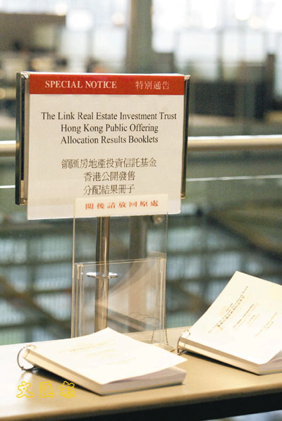 領匯基金公開發售,卻未能依期上市。 (張偉民攝)