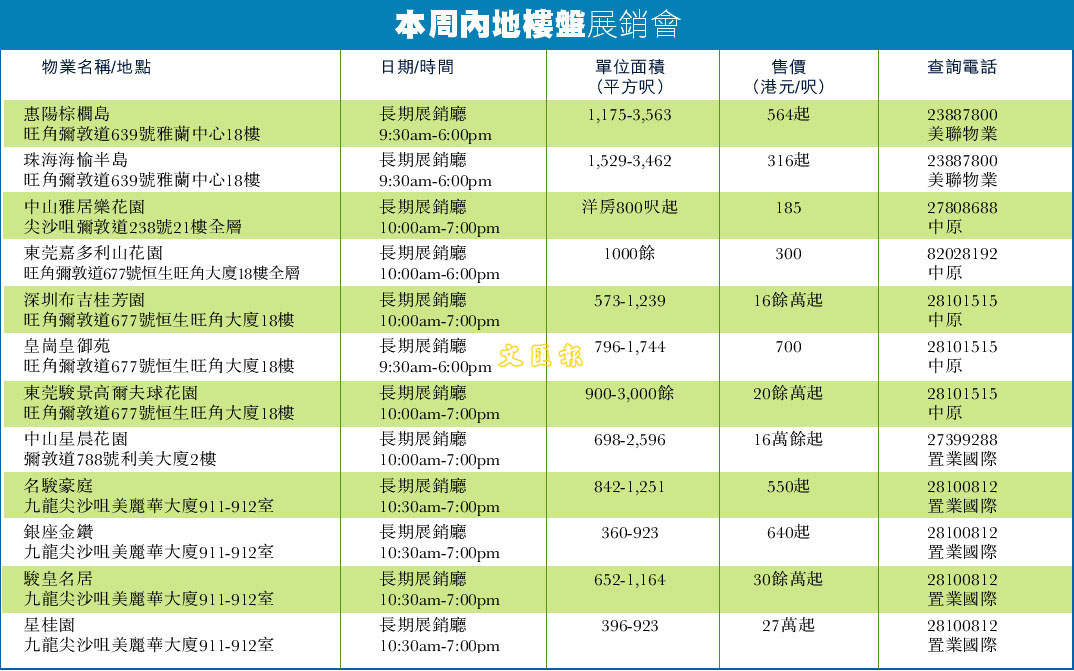 本周內地樓盤展銷會 (圖)