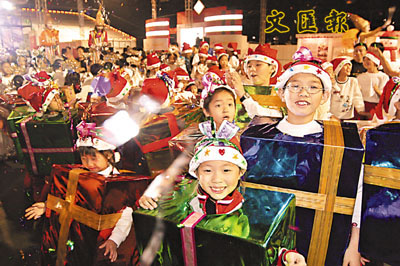 工展會巡遊迎聖誕,大批市民到場觀賞。(羅蘭蓉攝)
