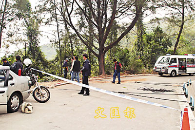 昨晨11時許,10多名重點搜索隊人員到場,身繫繩索游繩落山搜索證物,檢獲一批物品,包括有手襪、煙蒂及一個相信是新近才被人丟棄山坡的啤酒罐。及至下午2時半,警方才撤走。