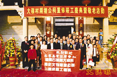 12月11日風和日麗,廣東省番禺區石樓鎮大嶺村熱鬧非常,該村迎來了兩塘公祠重修竣工慶典盛事。建於明朝永樂年間具600多年歷史的兩塘公祠,在香港紀念黃世仲基金會主席陳堅等善長的慷慨捐資下,經過一年的重修,美輪美奐,重現當年風貌。來自香港的善長、嘉賓與3000多鄉親,共同見證這值得紀念的喜慶日子。