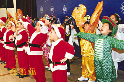 日前,馬會便將禮物轉贈香港基督教服務處觀塘區各幼兒中心,讓區內小朋友一同感受節日氣氛,歡度聖誕。38位來自香港基督教服務處觀塘幼兒院的4至6歲小朋友,在馬會行政大樓接收聖誕禮物之餘,更為大家獻唱聖詩及表演,與眾同樂。