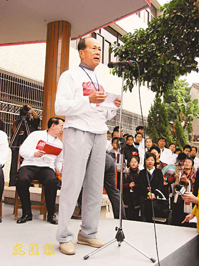 李嘉誠在儀式上致辭。 (李瑩 攝)