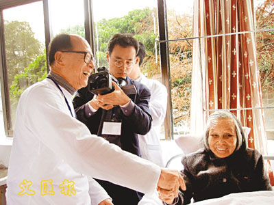 李嘉誠探望衛生站的老人,殷切問候病況。