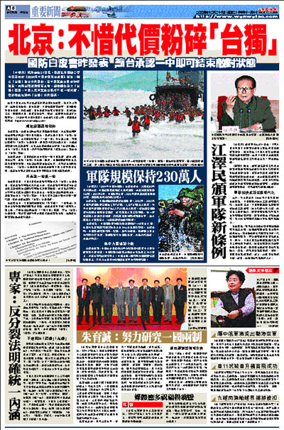 [2004-12-28] 北京:不惜代價粉碎「台獨」 放大圖片