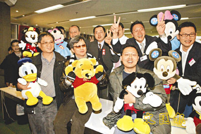 趙國雄(前左二)表示,料香港迪士尼樂園在今年九月開幕,有助悅濤軒的銷情。 (張偉民 攝)